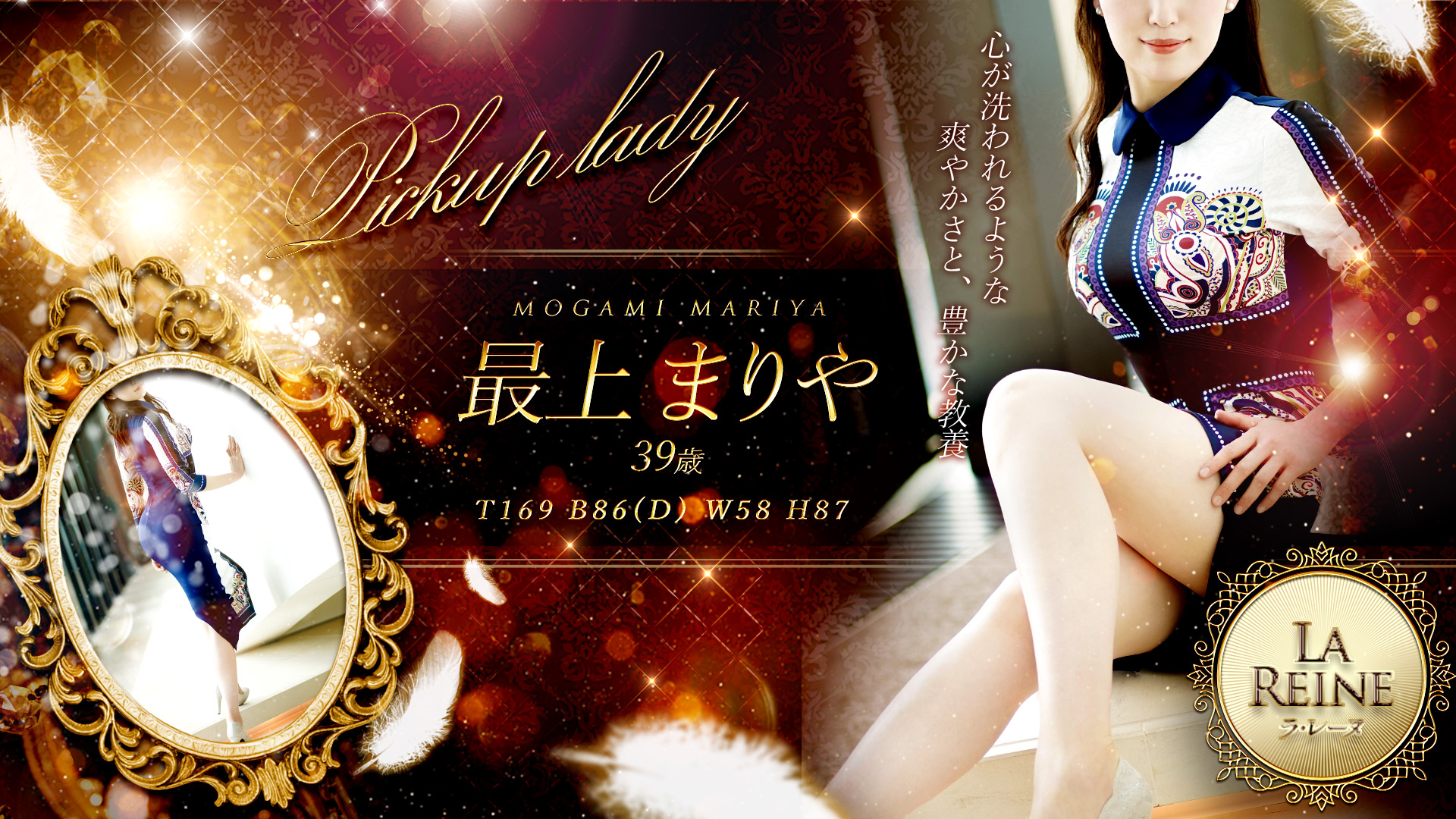 もがみ まりや最上 まりや(40)T169 B86 (D) W58 H8712:00 - 19:00これから出勤あと05:39:42でご案内可能 -